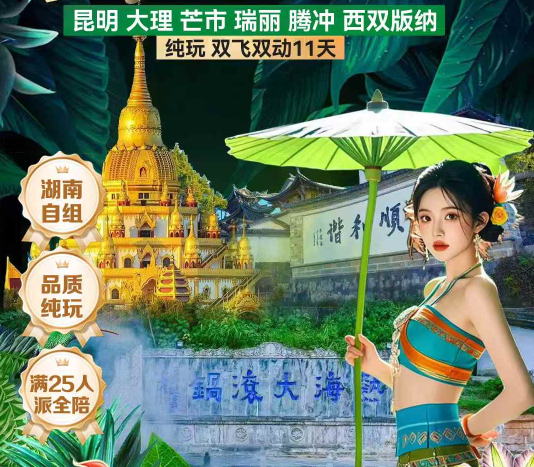 首家独发-云上腾瑞版-昆大芒瑞版-双飞双动11天 (湖南独家自组全陪班)